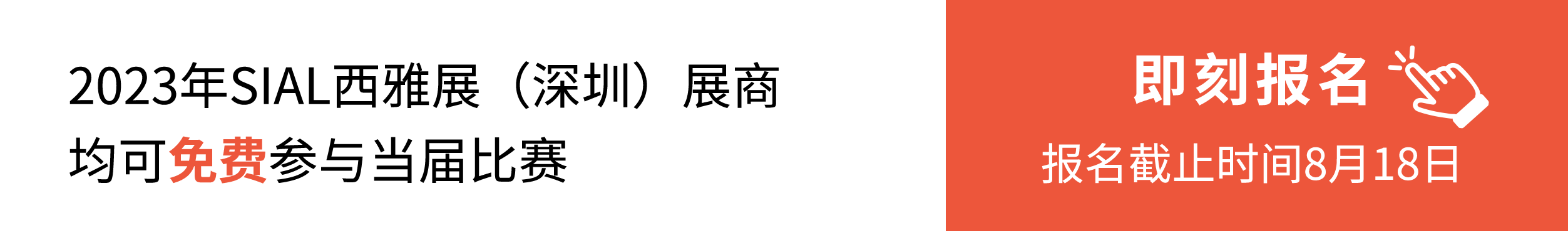 | 創(chuàng)新大賽報(bào)名進(jìn)入倒計(jì)時,攻略在手 參賽無憂 2023年SIAL西雅展 (深圳) 展商 均可免費(fèi)參與當(dāng)屆比賽 報(bào)名截止時間:8月18日 |