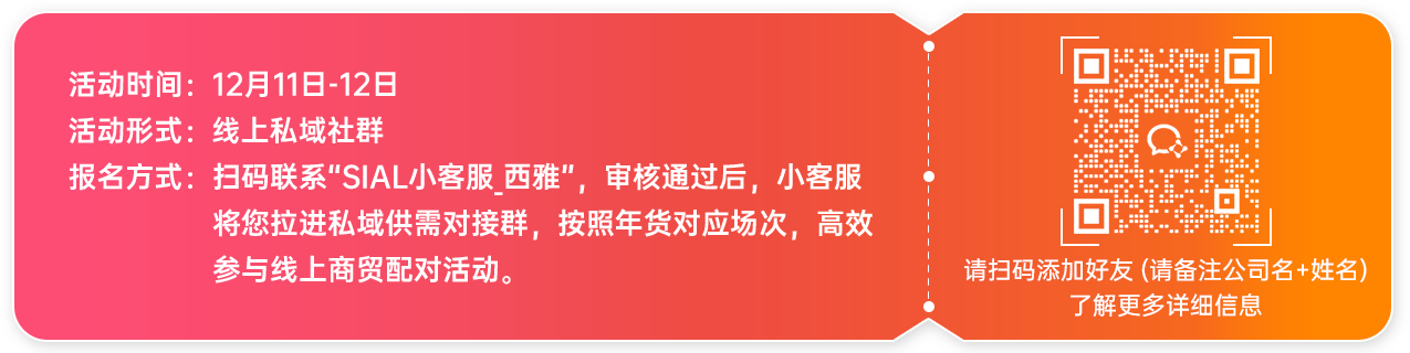 為助力品牌商、經銷商、商超等食飲全產業鏈打好年底最硬的一場“戰役”,SIAL西雅展于12月11日-12日正式啟動線上供需對接活動——“SIAL西雅展秋冬食飲采購節”。
