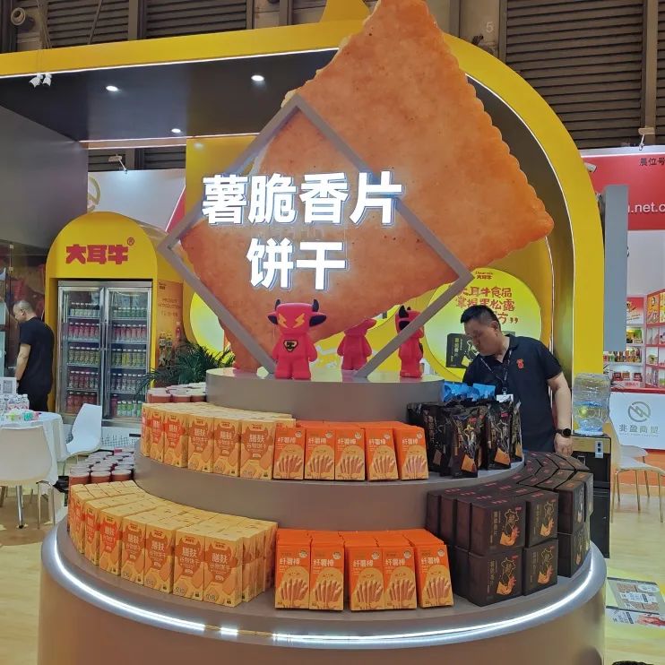 大耳牛作為近年來快速崛起的食品品牌,始終致力于為消費者提供既健康又美味的食品。在上海展期間,大耳牛食品的展位設計簡約卻充滿創意,不僅為展會增添了亮麗色彩,還向世界充分展示了其強大的品牌實力與創新能力。公司帶來的產品系列包括蘇打餅干、薯脆香片、膳麩谷物餅干以及纖薯棒等,滿足不同消費者的口味需求。