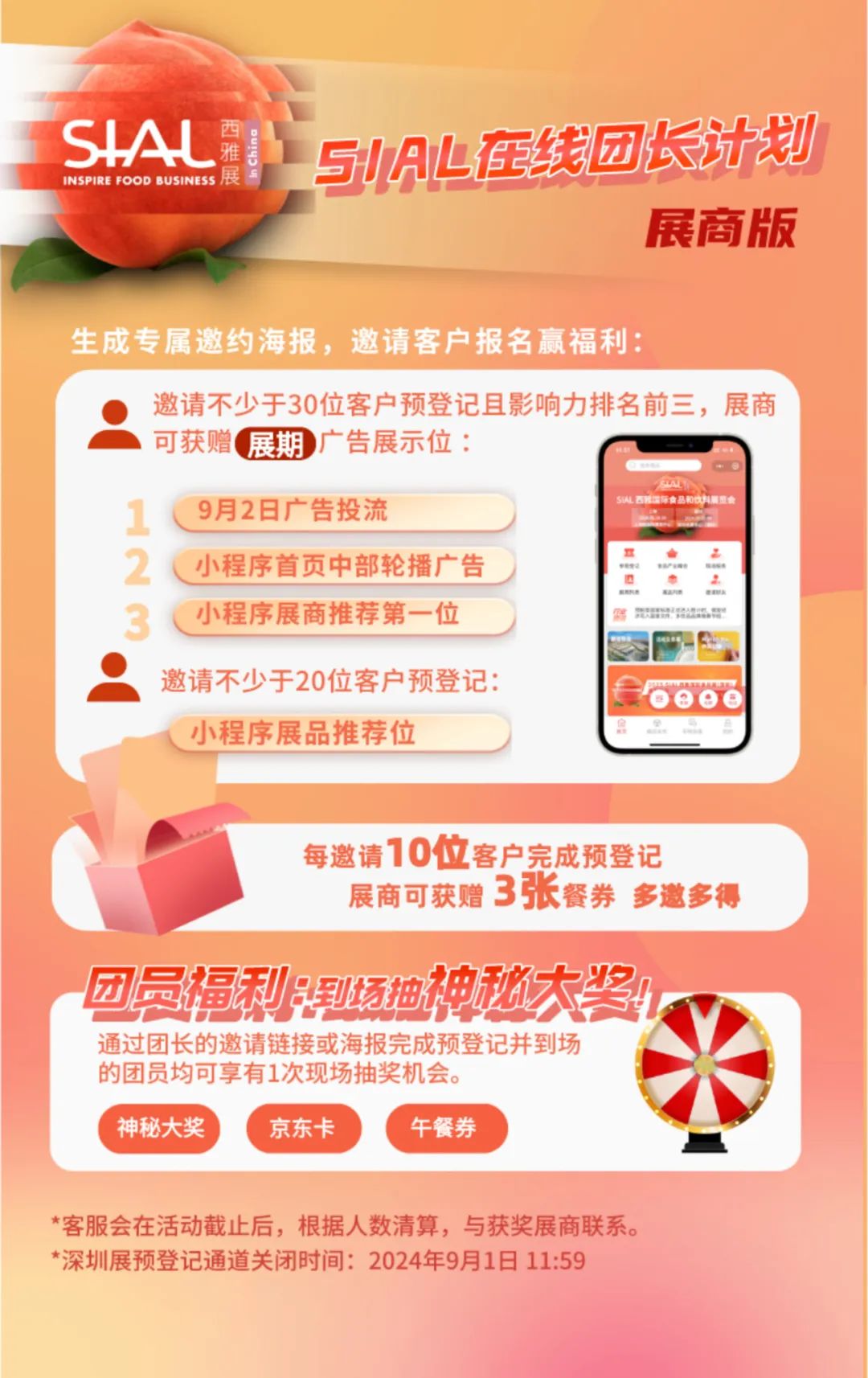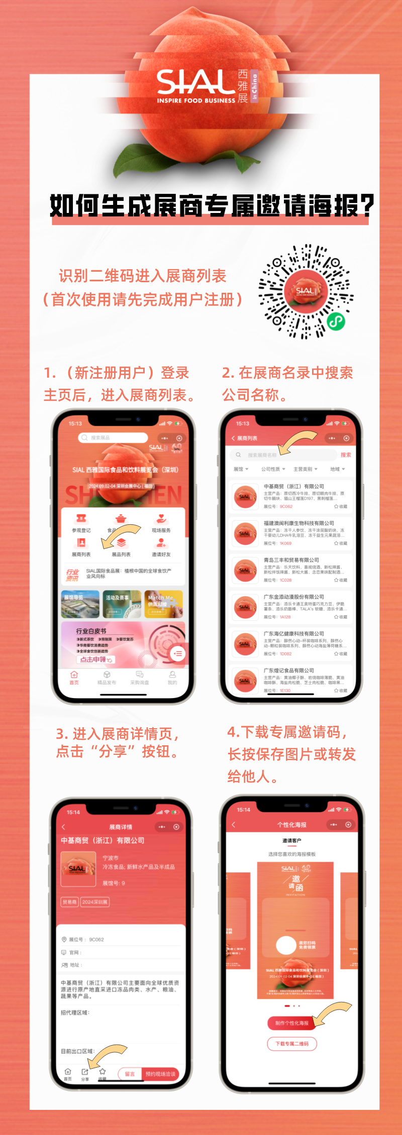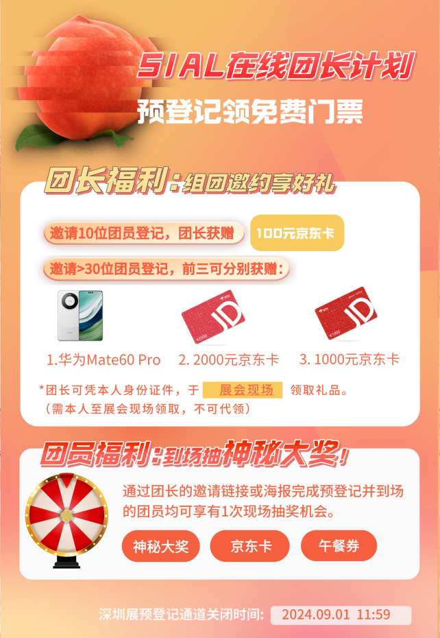尊敬的每位展商和專業(yè)觀眾們,為了給大家?guī)砀S富、更有價值的展會體驗,主辦方精心策劃了SIAL在線小程序預(yù)登記“您邀請,我送禮!展前預(yù)熱活動”,誠邀您的積極參與!