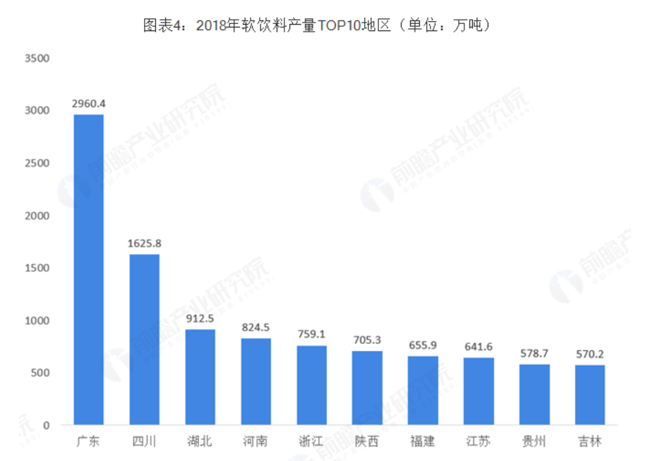 得益于人口、地理優勢,生產基地靠近消費市場,廣東的飲料消費量也遠高于其他省市地區,根據國家統計局數據,2019年廣東省飲料生產量占中國飲料生產總量的比例為18.38%。