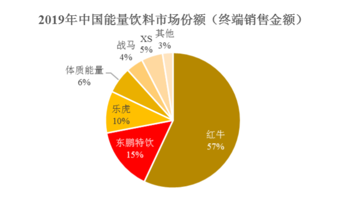 根據東鵬特飲招股說明書的內容,2019年東鵬特飲在中國能量飲料中的市場份兒為15%,緊跟市場份額為57%的市場頭號玩家紅牛。