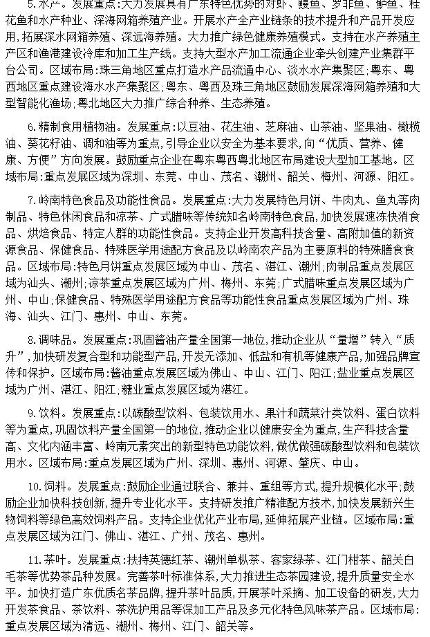 根據廣東省工業和信息化廳發布的《廣東省發展現代農業與食品戰略性支柱產業集群行動計劃(2021—2025年)》,飲料與糧食、蔬菜、嶺南水果、畜禽、水產、嶺南特色食品及功能性食品、茶葉等一同成為重點優化的子產業集群: